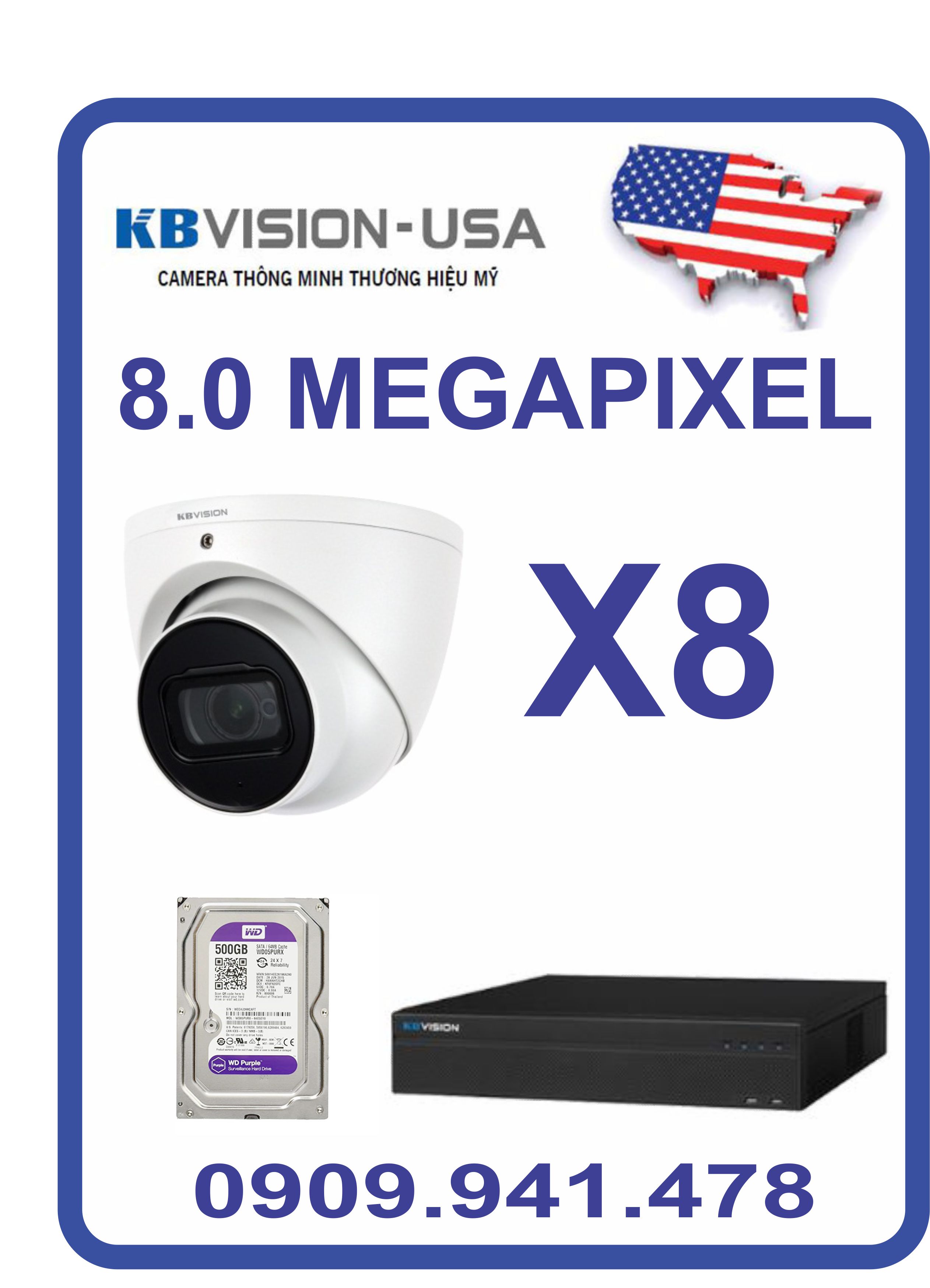 - 8 camera DOME hồng ngoại quan sát ngày và đêm. LED ARRAY siêu sáng. chip 1/3 SONY (Made in Japan) với độ phân giải 8.0 Megapixel cho hình ảnh cực kì sắc nét và chất lượng ổn định.